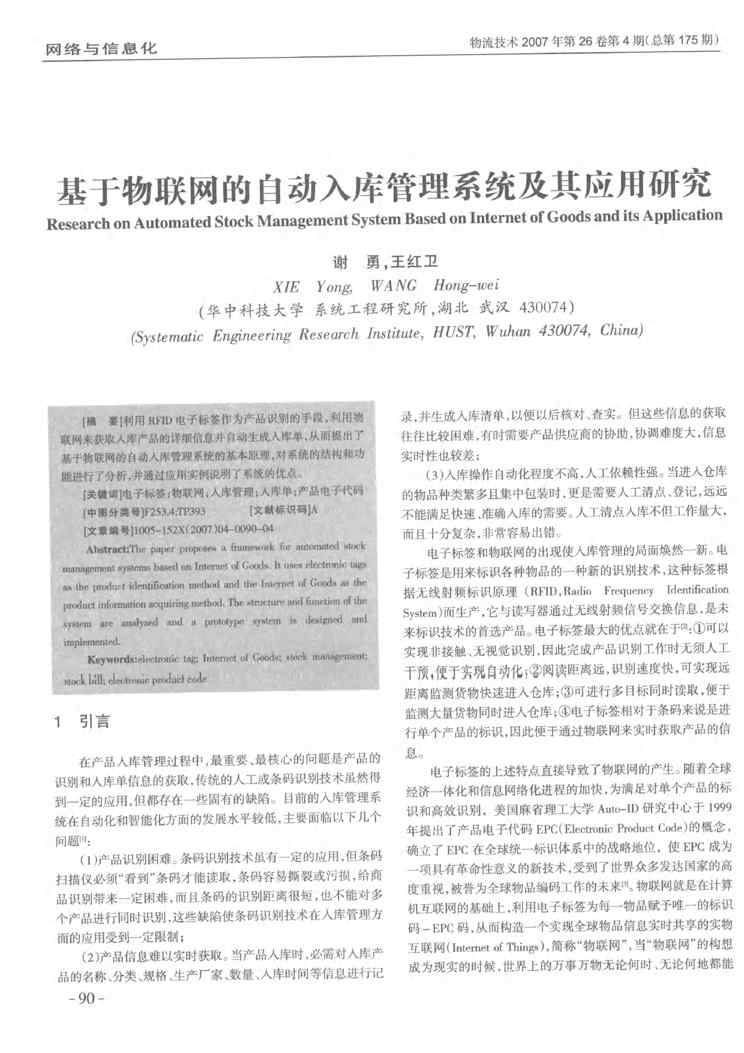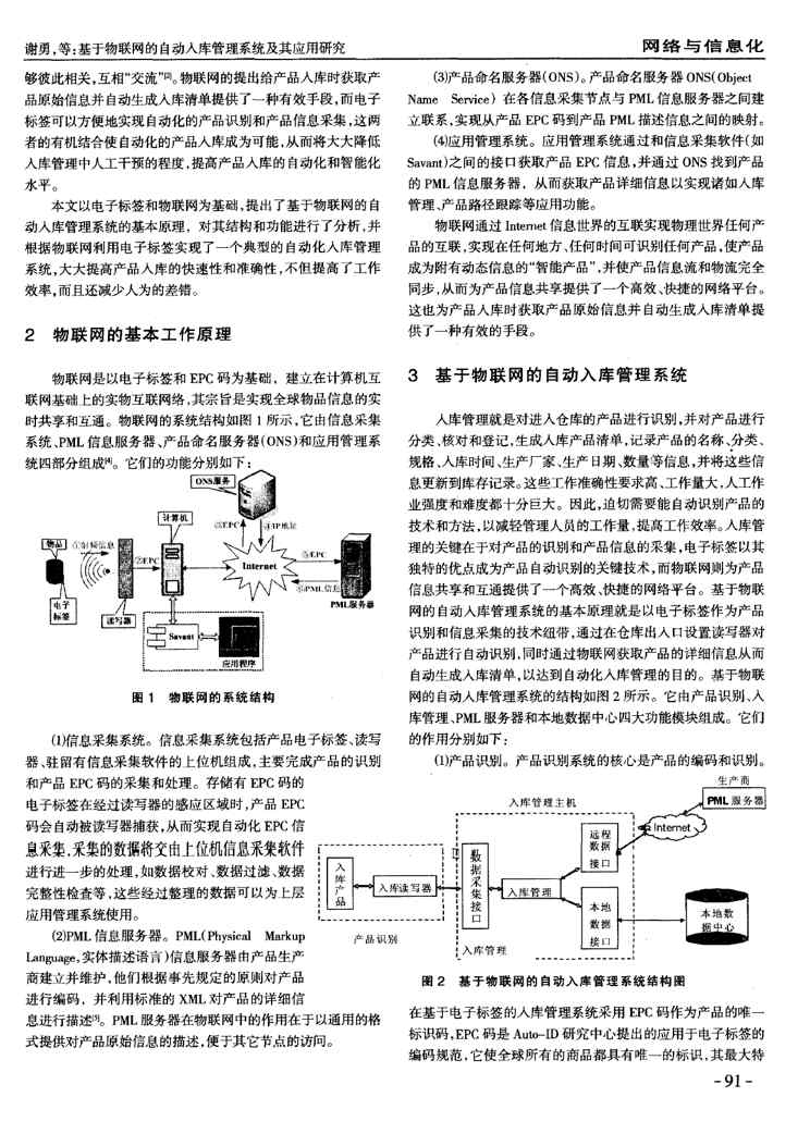 本站资深用户发布了最新的《基于物联网的自动入库管理系统及其应用研究》文档,以下内容为预览,详细内容可下载阅读。 声明:本站所有文章,如无特殊说明或标注,均为本站原创发布。任何个人或组织,在未征得本站同意时,禁止复制、盗用、采集、发布本站内容到任何网站、书籍等各类媒体平台。如若本站内容侵犯了原著者的合法权益,可联系我们进行处理。