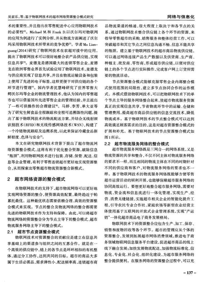 不久前,最新文档《基于物联网技术的超市网络资源整合模式研究》全文正式在本站发布,感兴趣的用户可以下载阅读。 声明:本站所有文章,如无特殊说明或标注,均为本站原创发布。任何个人或组织,在未征得本站同意时,禁止复制、盗用、采集、发布本站内容到任何网站、书籍等各类媒体平台。如若本站内容侵犯了原著者的合法权益,可联系我们进行处理。