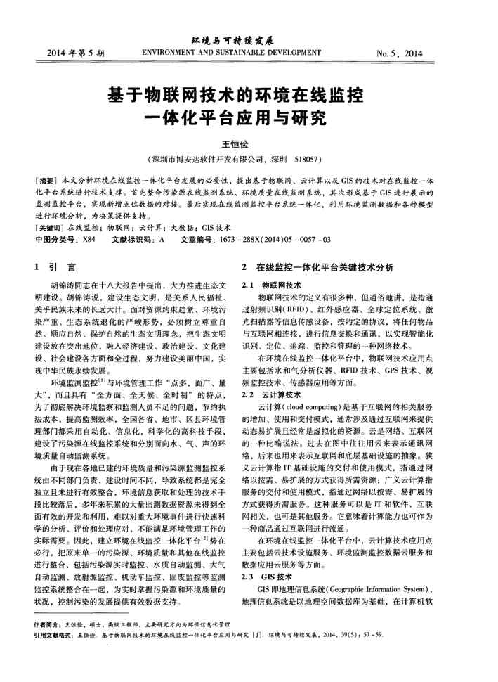 本站资深用户发布了最新的《基于物联网技术的环境在线监控一体化平台应用与研究》文档,以下内容为预览,详细内容可下载阅读。