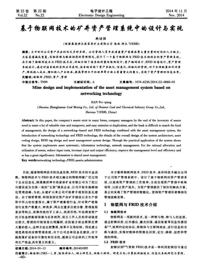 本站正式发布了《基于物联网技术的矿井资产管理系统中的设计与实现》文档,文档详细内容可下载阅读。 声明:本站所有文章,如无特殊说明或标注,均为本站原创发布。任何个人或组织,在未征得本站同意时,禁止复制、盗用、采集、发布本站内容到任何网站、书籍等各类媒体平台。如若本站内容侵犯了原著者的合法权益,可联系我们进行处理。