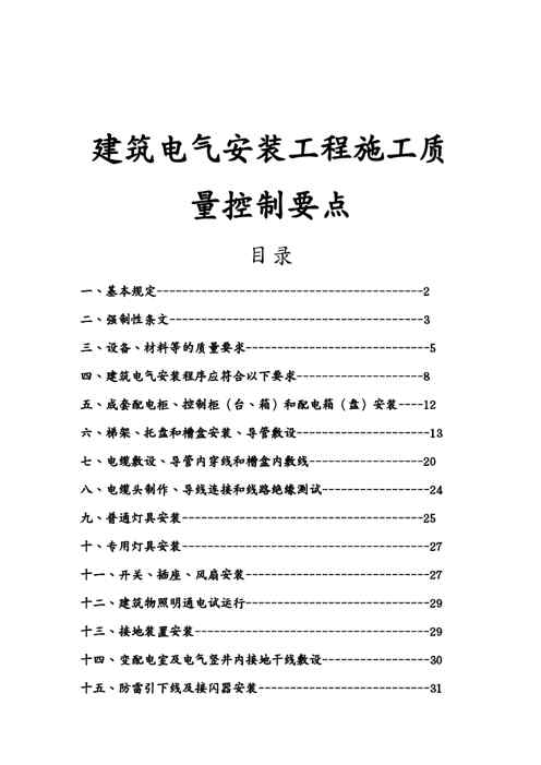 本站资深用户发布了最新的《{品质管理质量控制}建筑电气安装工程施工质量控制要点》文档,以下内容为预览,详细内容可下载阅读。 声明:本站所有文章,如无特殊说明或标注,均为本站原创发布。任何个人或组织,在未征得本站同意时,禁止复制、盗用、采集、发布本站内容到任何网站、书籍等各类媒体平台。如若本站内容侵犯了原著者的合法权益,可联系我们进行处理。