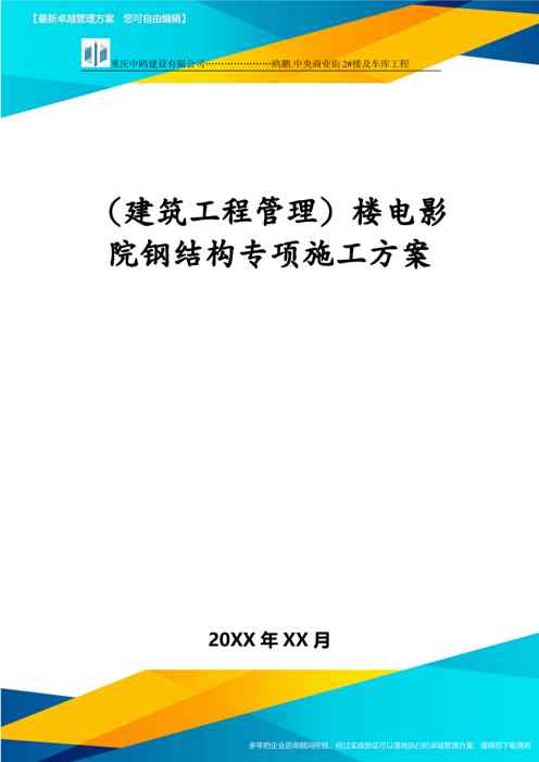本站正式发布了《(建筑工程管理)楼电影院钢结构专项施工方案》文档,文档详细内容可下载阅读。 声明:本站所有文章,如无特殊说明或标注,均为本站原创发布。任何个人或组织,在未征得本站同意时,禁止复制、盗用、采集、发布本站内容到任何网站、书籍等各类媒体平台。如若本站内容侵犯了原著者的合法权益,可联系我们进行处理。