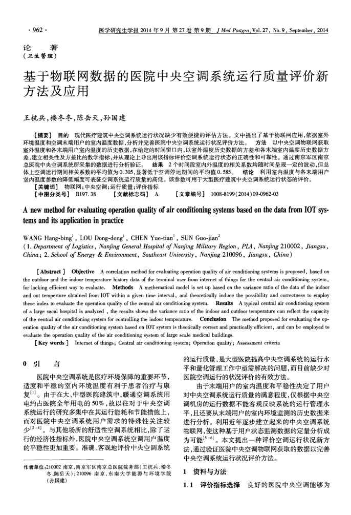 不久前,最新文档《基于物联网数据的医院中央空调系统运行质量评价新方法及应用》全文正式在本站发布,感兴趣的用户可以下载阅读。 声明:本站所有文章,如无特殊说明或标注,均为本站原创发布。任何个人或组织,在未征得本站同意时,禁止复制、盗用、采集、发布本站内容到任何网站、书籍等各类媒体平台。如若本站内容侵犯了原著者的合法权益,可联系我们进行处理。