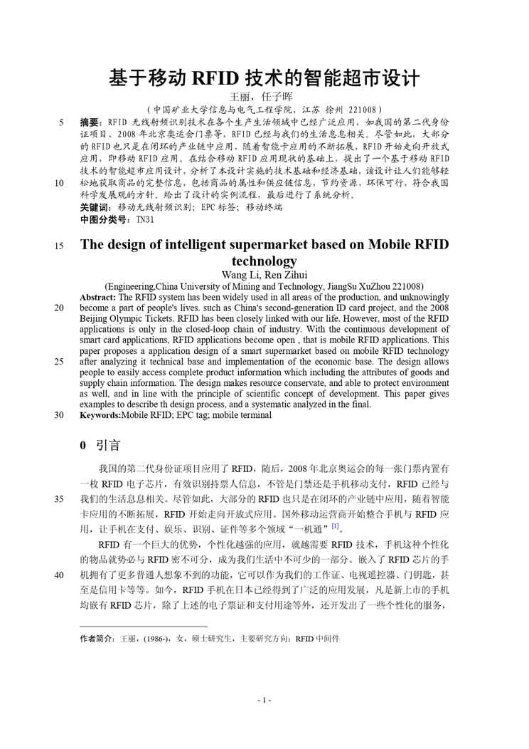 不久前,最新文档《基于移动RFID技术的智能超市设计》全文正式在本站发布,感兴趣的用户可以下载阅读。 声明:本站所有文章,如无特殊说明或标注,均为本站原创发布。任何个人或组织,在未征得本站同意时,禁止复制、盗用、采集、发布本站内容到任何网站、书籍等各类媒体平台。如若本站内容侵犯了原著者的合法权益,可联系我们进行处理。