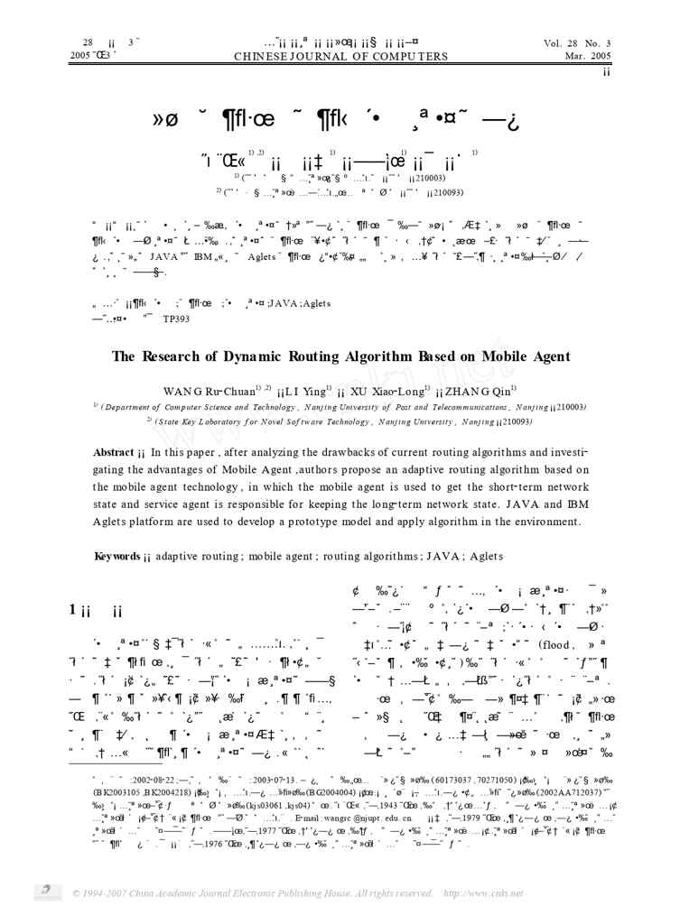 本站资深用户发布了最新的《基于移动代理的动态路由算法的研究》文档,以下内容为预览,详细内容可下载阅读。 声明:本站所有文章,如无特殊说明或标注,均为本站原创发布。任何个人或组织,在未征得本站同意时,禁止复制、盗用、采集、发布本站内容到任何网站、书籍等各类媒体平台。如若本站内容侵犯了原著者的合法权益,可联系我们进行处理。