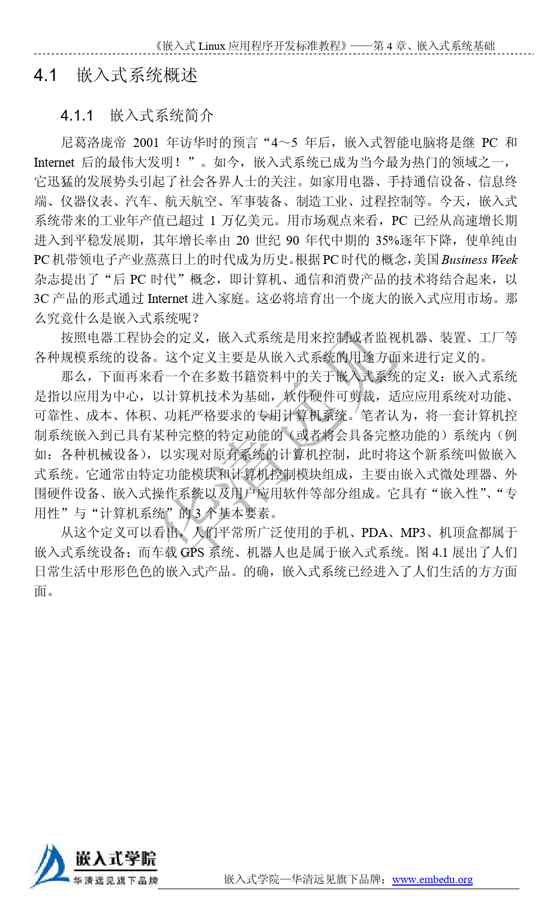 本站资深用户发布了最新的《嵌入式人才培养工程》文档,以下内容为预览,详细内容可下载阅读。 声明:本站所有文章,如无特殊说明或标注,均为本站原创发布。任何个人或组织,在未征得本站同意时,禁止复制、盗用、采集、发布本站内容到任何网站、书籍等各类媒体平台。如若本站内容侵犯了原著者的合法权益,可联系我们进行处理。