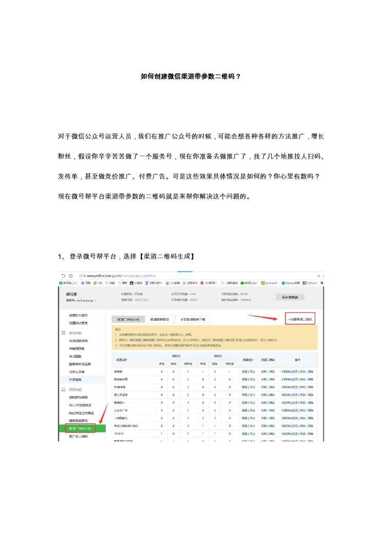 本站资深用户发布了最新的《如何创建微信渠道带参数二维码?》文档,以下内容为预览,详细内容可下载阅读。 声明:本站所有文章,如无特殊说明或标注,均为本站原创发布。任何个人或组织,在未征得本站同意时,禁止复制、盗用、采集、发布本站内容到任何网站、书籍等各类媒体平台。如若本站内容侵犯了原著者的合法权益,可联系我们进行处理。