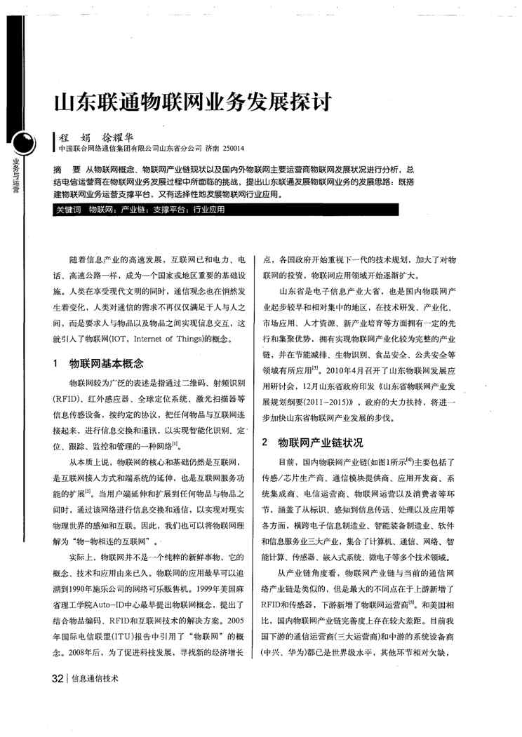 不久前,最新文档《山东联通物联网业务发展探讨》全文正式在本站发布,感兴趣的用户可以下载阅读。 声明:本站所有文章,如无特殊说明或标注,均为本站原创发布。任何个人或组织,在未征得本站同意时,禁止复制、盗用、采集、发布本站内容到任何网站、书籍等各类媒体平台。如若本站内容侵犯了原著者的合法权益,可联系我们进行处理。