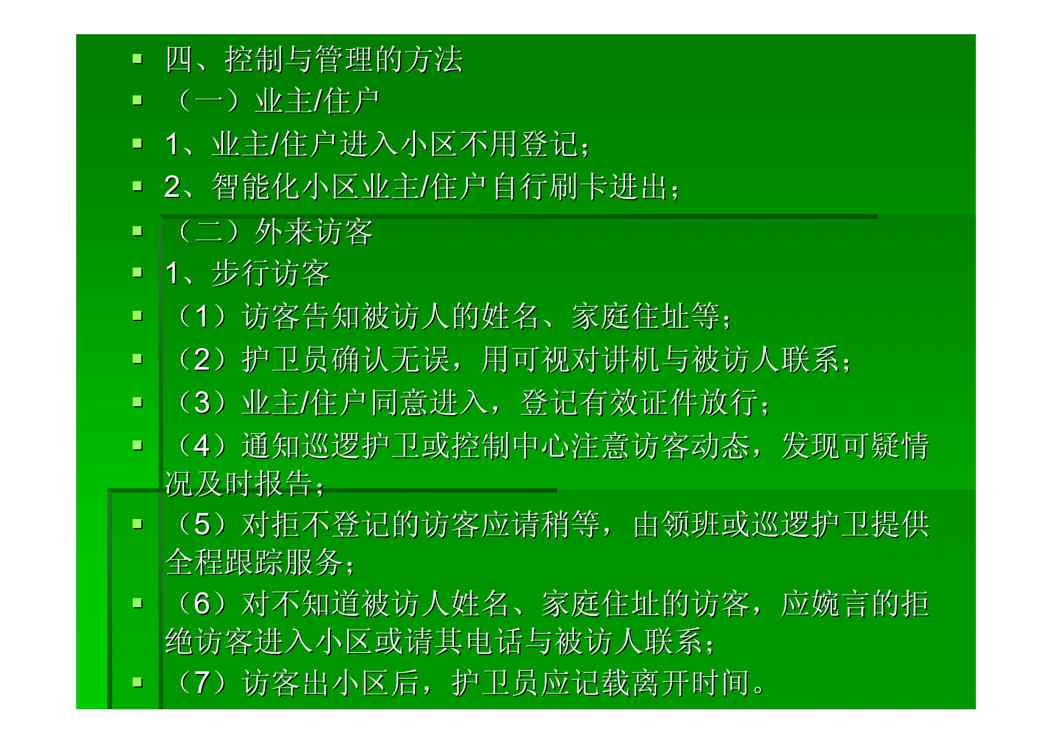 不久前,最新文档《小区人员及物品控制与管理》全文正式在本站发布,感兴趣的用户可以下载阅读。 声明:本站所有文章,如无特殊说明或标注,均为本站原创发布。任何个人或组织,在未征得本站同意时,禁止复制、盗用、采集、发布本站内容到任何网站、书籍等各类媒体平台。如若本站内容侵犯了原著者的合法权益,可联系我们进行处理。