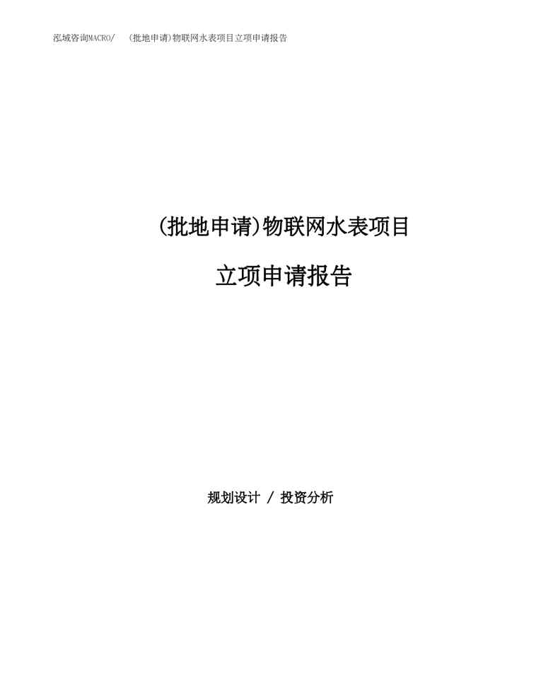 本站正式发布了《(批地申请)物联网水表项目立项申请报告》文档,文档详细内容可下载阅读。 声明:本站所有文章,如无特殊说明或标注,均为本站原创发布。任何个人或组织,在未征得本站同意时,禁止复制、盗用、采集、发布本站内容到任何网站、书籍等各类媒体平台。如若本站内容侵犯了原著者的合法权益,可联系我们进行处理。