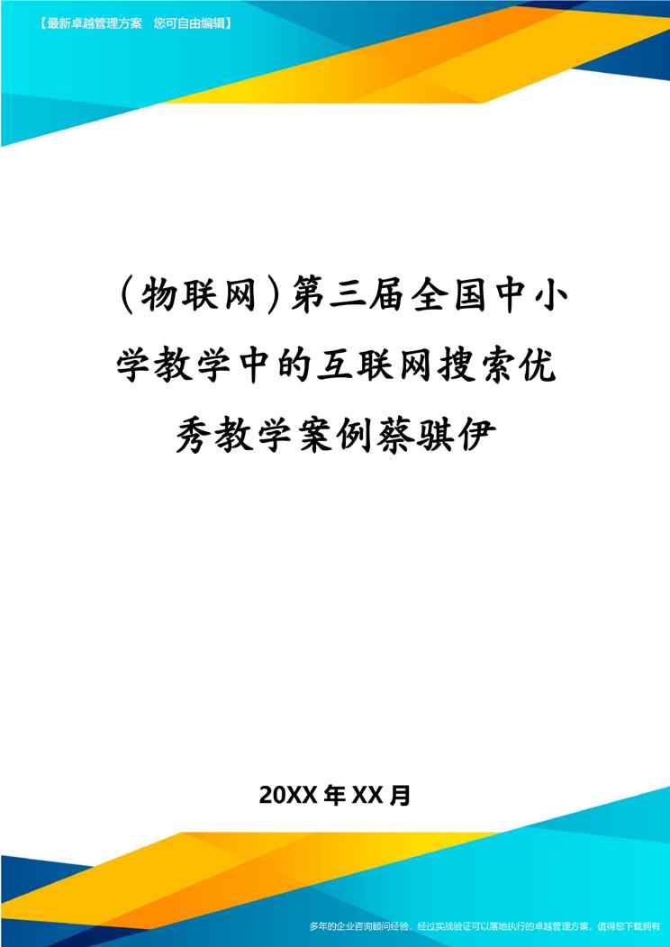 本站资深用户发布了最新的《(物联网)第三届全国中小学教学中的互联网搜索优秀教学案例蔡骐伊》文档,以下内容为预览,详细内容可下载阅读。 声明:本站所有文章,如无特殊说明或标注,均为本站原创发布。任何个人或组织,在未征得本站同意时,禁止复制、盗用、采集、发布本站内容到任何网站、书籍等各类媒体平台。如若本站内容侵犯了原著者的合法权益,可联系我们进行处理。