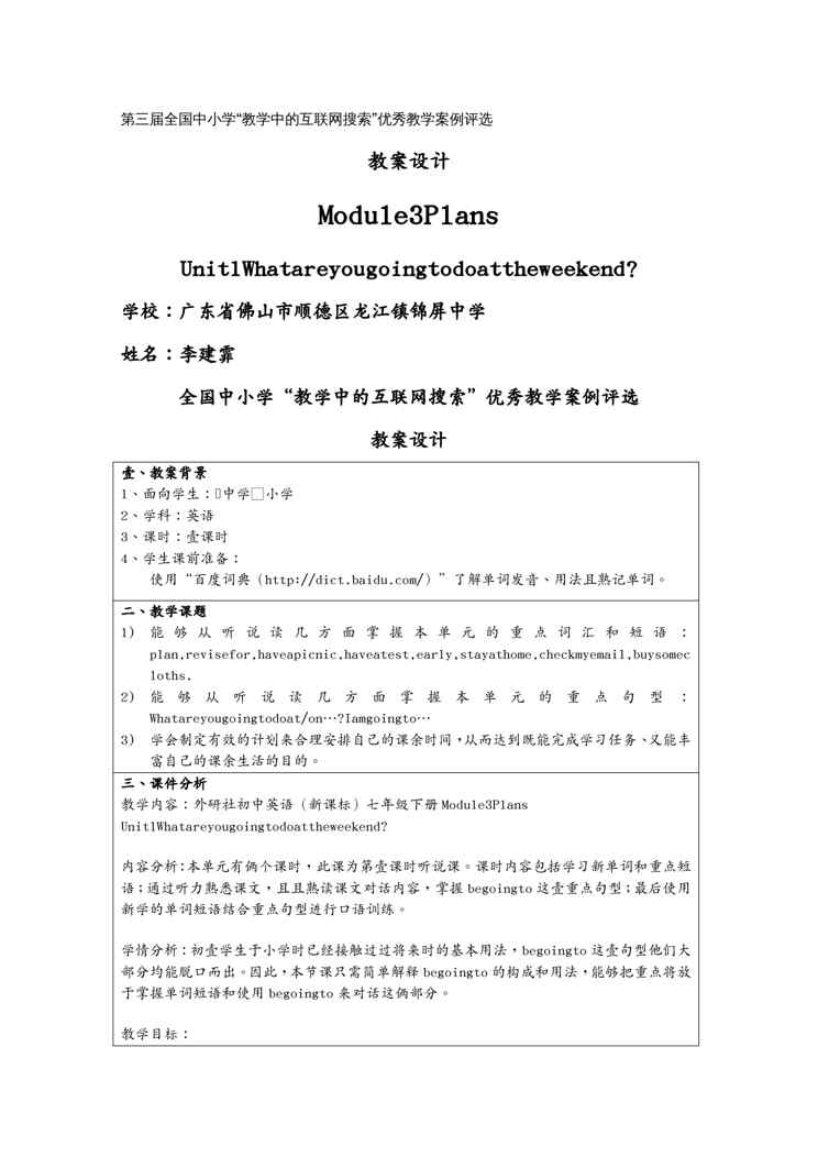 本站正式发布了《(物联网)第三届全国中小学教学中的互联网搜索优秀教学案例评选(外研版七》文档,文档详细内容可下载阅读。 声明:本站所有文章,如无特殊说明或标注,均为本站原创发布。任何个人或组织,在未征得本站同意时,禁止复制、盗用、采集、发布本站内容到任何网站、书籍等各类媒体平台。如若本站内容侵犯了原著者的合法权益,可联系我们进行处理。