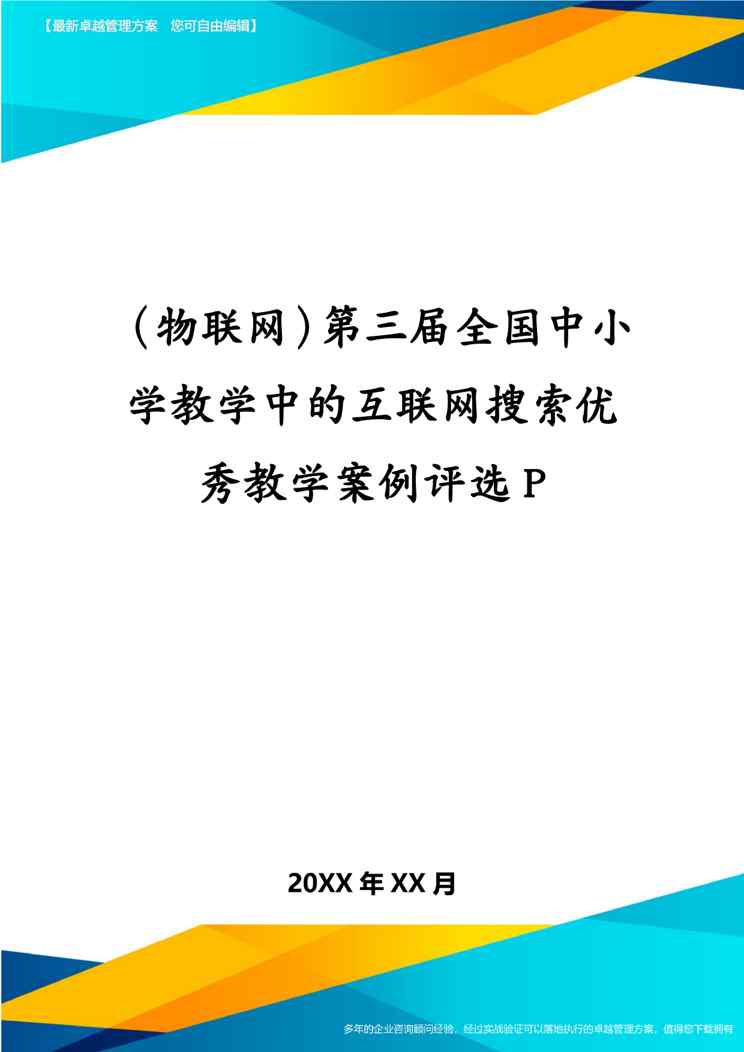 不久前,最新文档《(物联网)第三届全国中小学教学中的互联网搜索优秀教学案例评选P》全文正式在本站发布,感兴趣的用户可以下载阅读。 声明:本站所有文章,如无特殊说明或标注,均为本站原创发布。任何个人或组织,在未征得本站同意时,禁止复制、盗用、采集、发布本站内容到任何网站、书籍等各类媒体平台。如若本站内容侵犯了原著者的合法权益,可联系我们进行处理。