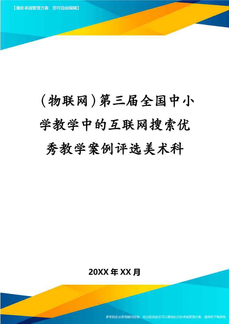 本站正式发布了《(物联网)第三届全国中小学教学中的互联网搜索优秀教学案例评选美术科》文档,文档详细内容可下载阅读。 声明:本站所有文章,如无特殊说明或标注,均为本站原创发布。任何个人或组织,在未征得本站同意时,禁止复制、盗用、采集、发布本站内容到任何网站、书籍等各类媒体平台。如若本站内容侵犯了原著者的合法权益,可联系我们进行处理。