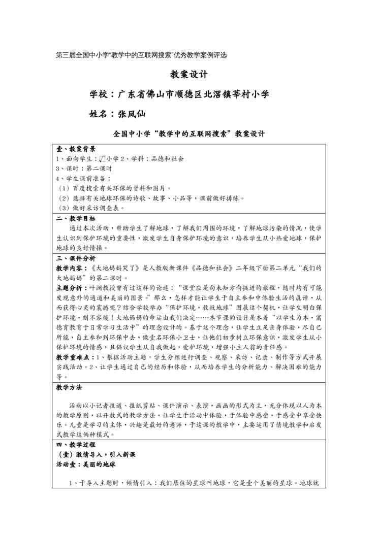 本站资深用户发布了最新的《(物联网)第三届全国中小学教学中的互联网搜索优秀教学案例评选品德与社会》文档,以下内容为预览,详细内容可下载阅读。 声明:本站所有文章,如无特殊说明或标注,均为本站原创发布。任何个人或组织,在未征得本站同意时,禁止复制、盗用、采集、发布本站内容到任何网站、书籍等各类媒体平台。如若本站内容侵犯了原著者的合法权益,可联系我们进行处理。