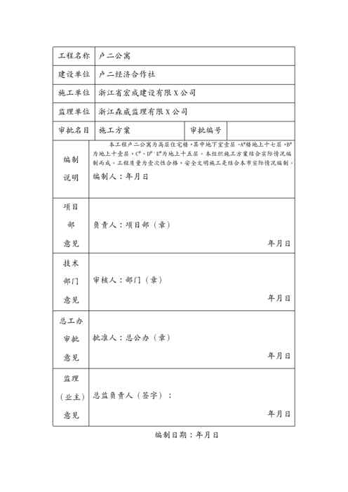 本站资深用户发布了最新的《(建筑工程管理)卢二公寓施工方案》文档,以下内容为预览,详细内容可下载阅读。 声明:本站所有文章,如无特殊说明或标注,均为本站原创发布。任何个人或组织,在未征得本站同意时,禁止复制、盗用、采集、发布本站内容到任何网站、书籍等各类媒体平台。如若本站内容侵犯了原著者的合法权益,可联系我们进行处理。