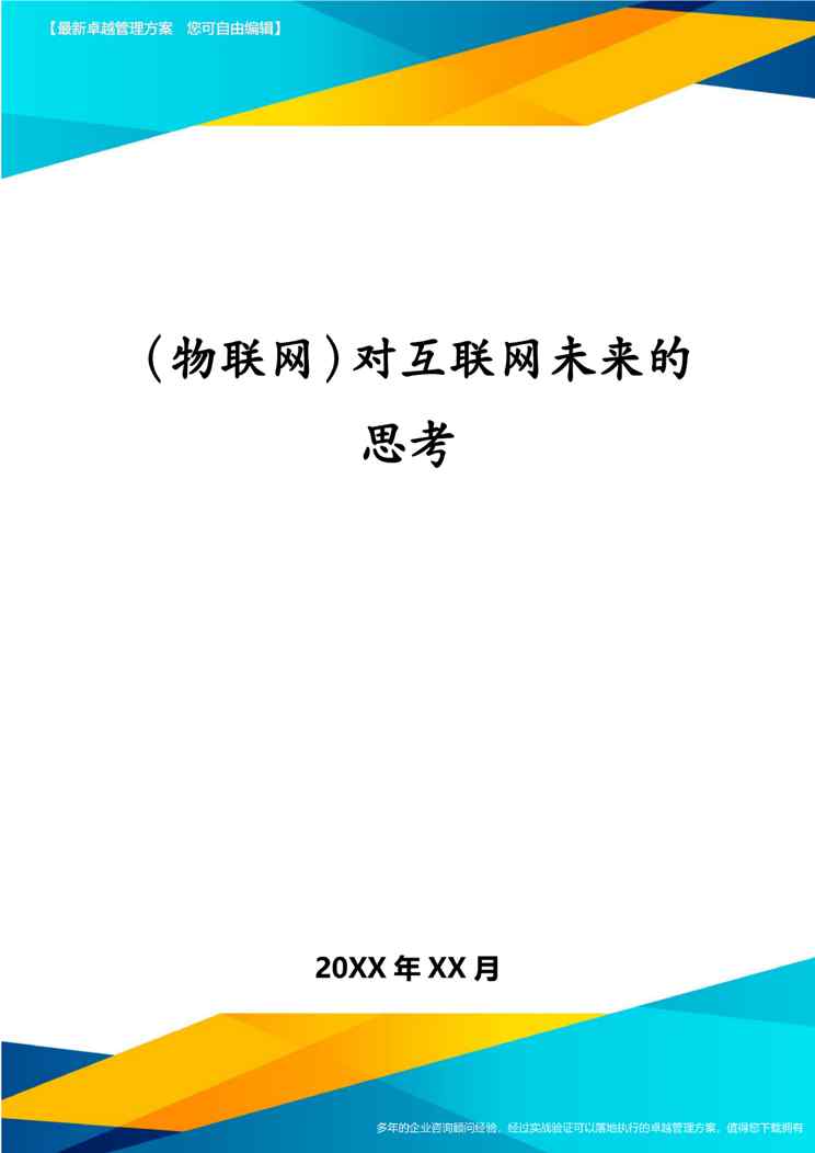 本站资深用户发布了最新的《(物联网)对互联网未来的思考》文档,以下内容为预览,详细内容可下载阅读。 声明:本站所有文章,如无特殊说明或标注,均为本站原创发布。任何个人或组织,在未征得本站同意时,禁止复制、盗用、采集、发布本站内容到任何网站、书籍等各类媒体平台。如若本站内容侵犯了原著者的合法权益,可联系我们进行处理。