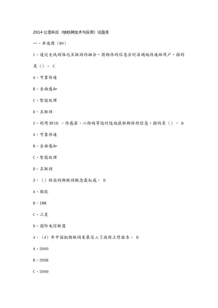 (物联网)公需科目物联网技术与应用试题库(物联网)公需科目物联网技术与应用试题库(物联网)公需科目物联网技术与应用试题库