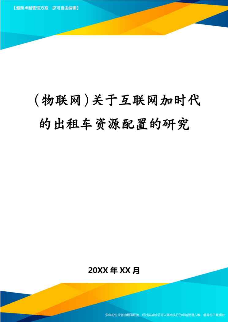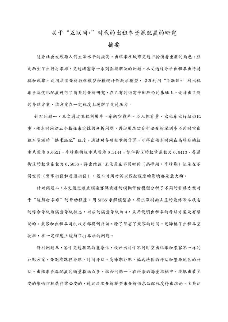 本站资深用户发布了最新的《(物联网)关于互联网加时代的出租车资源配置的研究》文档,以下内容为预览,详细内容可下载阅读。 声明:本站所有文章,如无特殊说明或标注,均为本站原创发布。任何个人或组织,在未征得本站同意时,禁止复制、盗用、采集、发布本站内容到任何网站、书籍等各类媒体平台。如若本站内容侵犯了原著者的合法权益,可联系我们进行处理。
