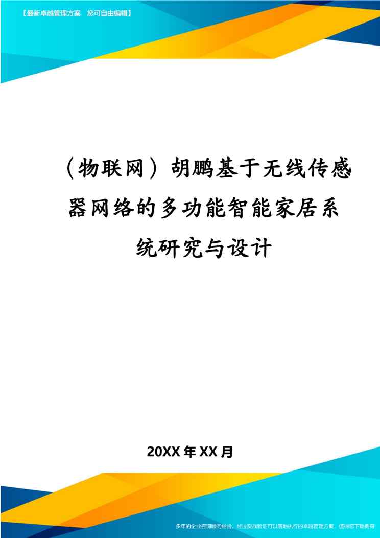 本站资深用户发布了最新的《(物联网)胡鹏基于无线传感器网络的多功能智能家居系统研究与设计》文档,以下内容为预览,详细内容可下载阅读。 声明:本站所有文章,如无特殊说明或标注,均为本站原创发布。任何个人或组织,在未征得本站同意时,禁止复制、盗用、采集、发布本站内容到任何网站、书籍等各类媒体平台。如若本站内容侵犯了原著者的合法权益,可联系我们进行处理。