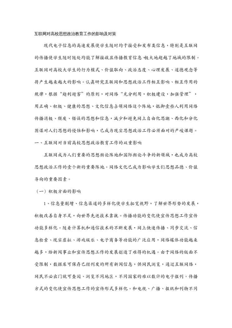 (物联网)互联网对高校思想政治教育工作的影响及对策(物联网)互联网对高校思想政治教育工作的影响及对策(物联网)互联网对高校思想政治教育工作的影响及对策