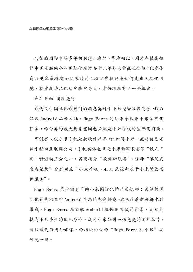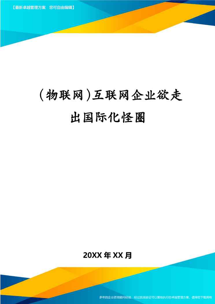 本站正式发布了《(物联网)互联网企业欲走出国际化怪圈》文档,文档详细内容可下载阅读。 声明:本站所有文章,如无特殊说明或标注,均为本站原创发布。任何个人或组织,在未征得本站同意时,禁止复制、盗用、采集、发布本站内容到任何网站、书籍等各类媒体平台。如若本站内容侵犯了原著者的合法权益,可联系我们进行处理。