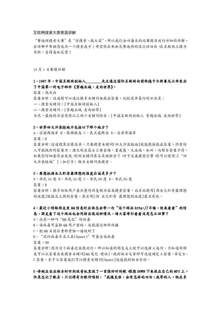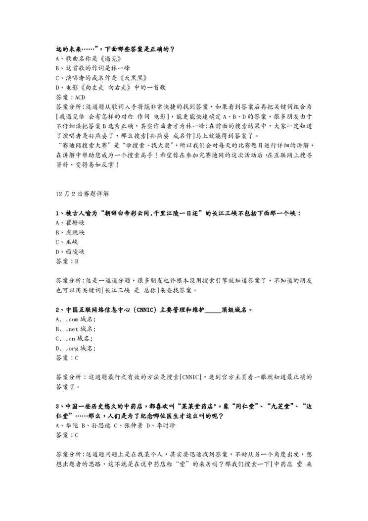 不久前,最新文档《(物联网)互联网搜索大赛赛题讲解》全文正式在本站发布,感兴趣的用户可以下载阅读。 声明:本站所有文章,如无特殊说明或标注,均为本站原创发布。任何个人或组织,在未征得本站同意时,禁止复制、盗用、采集、发布本站内容到任何网站、书籍等各类媒体平台。如若本站内容侵犯了原著者的合法权益,可联系我们进行处理。