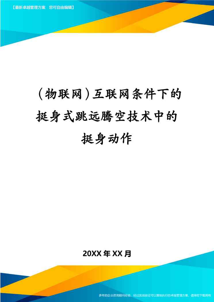 不久前,最新文档《(物联网)互联网条件下的挺身式跳远腾空技术中的挺身动作》全文正式在本站发布,感兴趣的用户可以下载阅读。 声明:本站所有文章,如无特殊说明或标注,均为本站原创发布。任何个人或组织,在未征得本站同意时,禁止复制、盗用、采集、发布本站内容到任何网站、书籍等各类媒体平台。如若本站内容侵犯了原著者的合法权益,可联系我们进行处理。