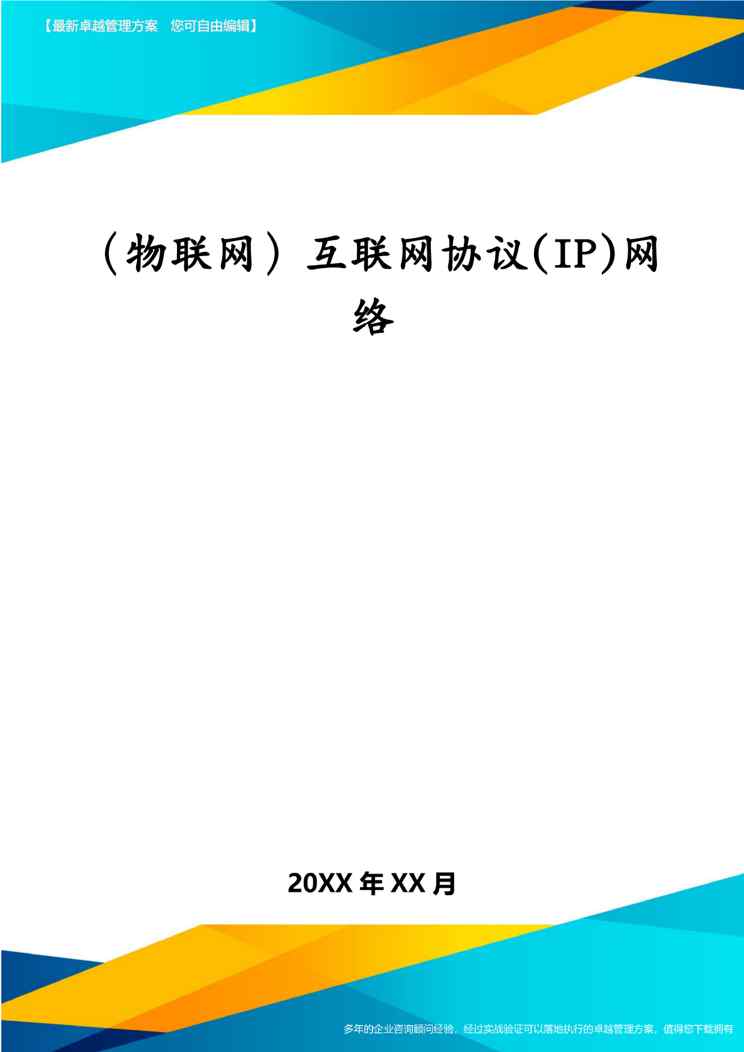 不久前,最新文档《(物联网)互联网协议(IP)网络》全文正式在本站发布,感兴趣的用户可以下载阅读。 声明:本站所有文章,如无特殊说明或标注,均为本站原创发布。任何个人或组织,在未征得本站同意时,禁止复制、盗用、采集、发布本站内容到任何网站、书籍等各类媒体平台。如若本站内容侵犯了原著者的合法权益,可联系我们进行处理。