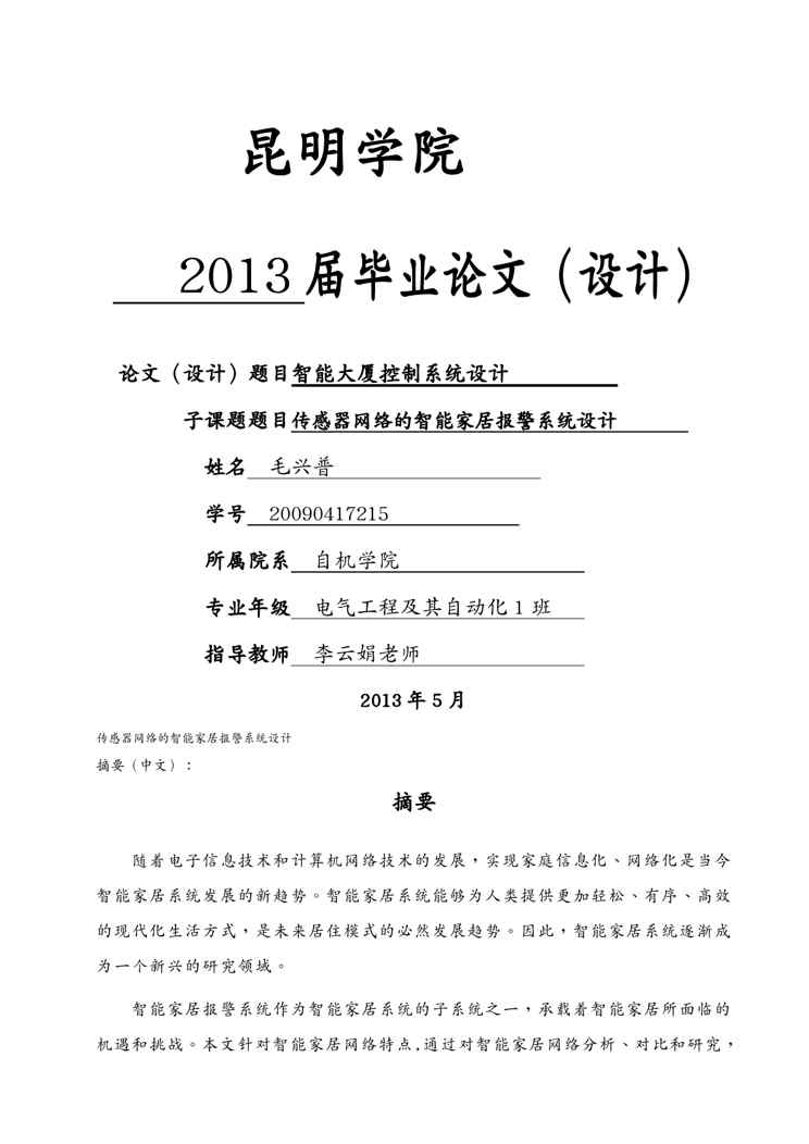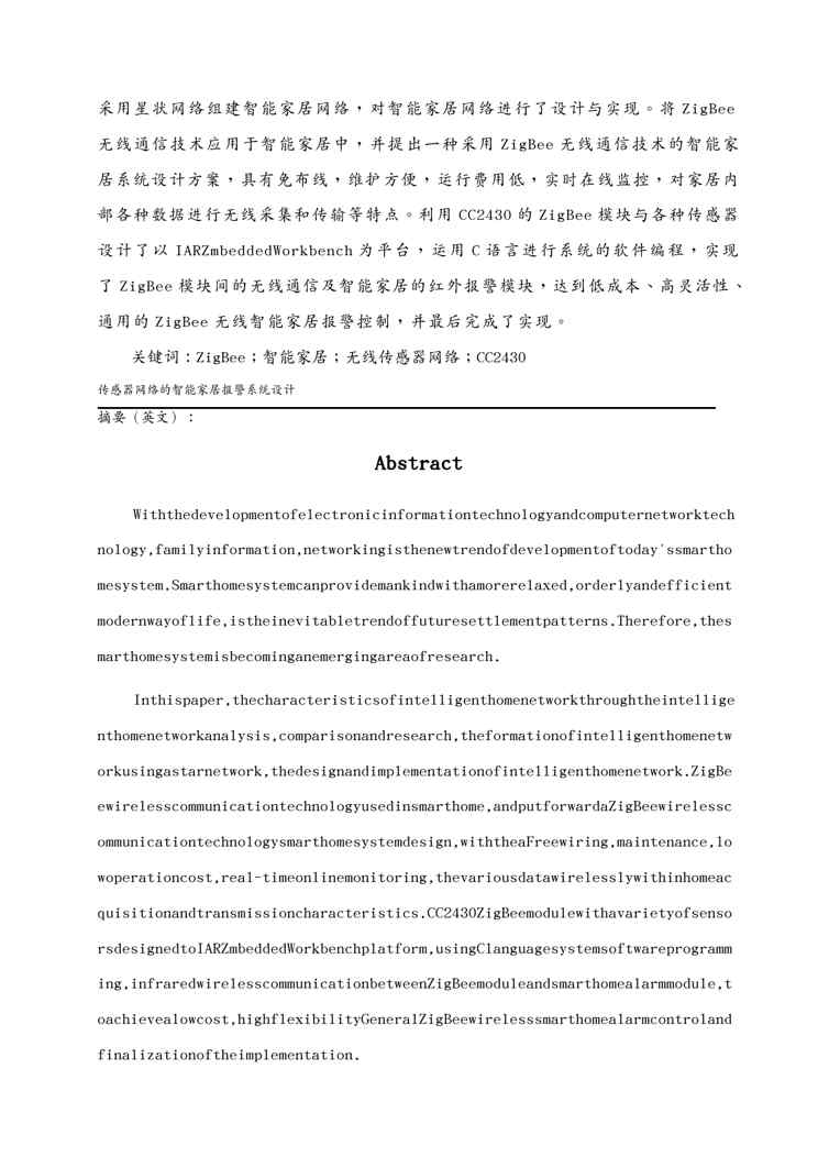 本站正式发布了《(物联网)基于无线传感器网络的智能家居报警系统》文档,文档详细内容可下载阅读。 声明:本站所有文章,如无特殊说明或标注,均为本站原创发布。任何个人或组织,在未征得本站同意时,禁止复制、盗用、采集、发布本站内容到任何网站、书籍等各类媒体平台。如若本站内容侵犯了原著者的合法权益,可联系我们进行处理。