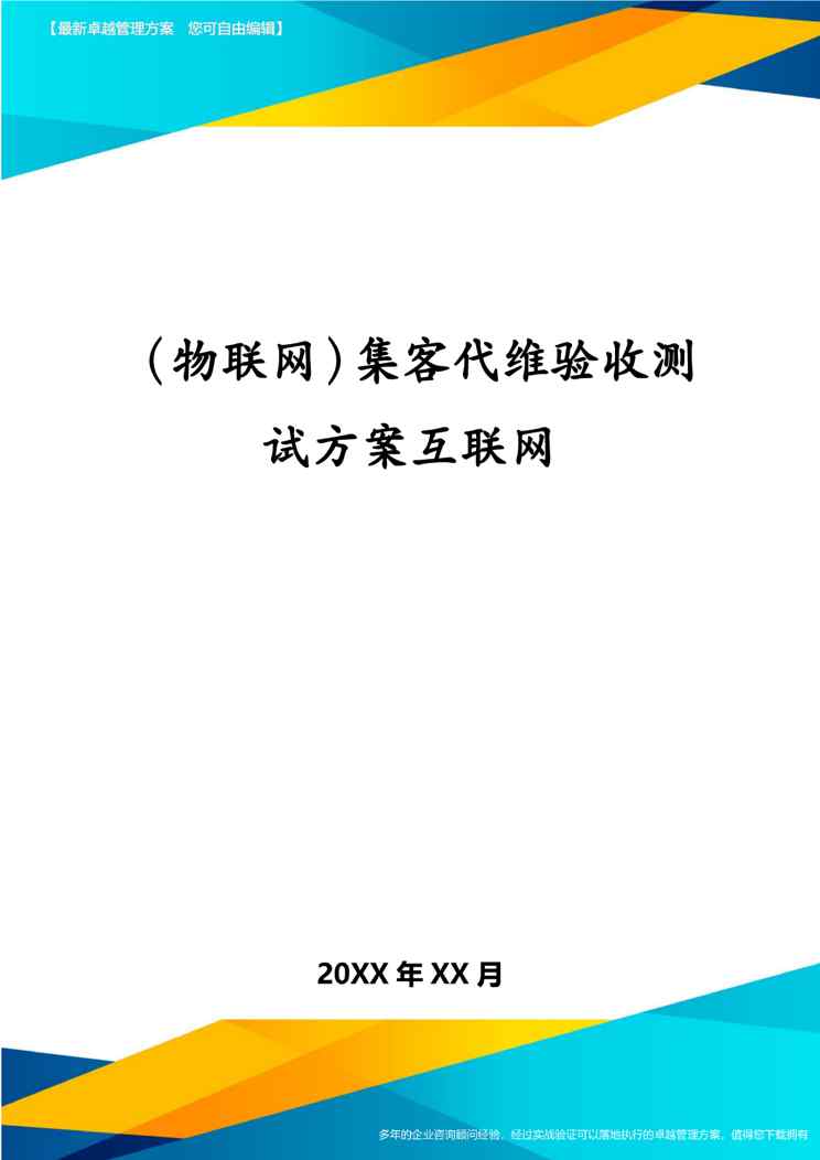 不久前,最新文档《(物联网)集客代维验收测试方案互联网》全文正式在本站发布,感兴趣的用户可以下载阅读。 声明:本站所有文章,如无特殊说明或标注,均为本站原创发布。任何个人或组织,在未征得本站同意时,禁止复制、盗用、采集、发布本站内容到任何网站、书籍等各类媒体平台。如若本站内容侵犯了原著者的合法权益,可联系我们进行处理。