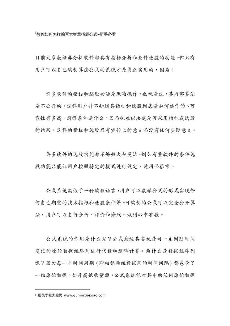 本站资深用户发布了最新的《(物联网)教你如何怎样编写大智慧指标公式》文档,以下内容为预览,详细内容可下载阅读。 声明:本站所有文章,如无特殊说明或标注,均为本站原创发布。任何个人或组织,在未征得本站同意时,禁止复制、盗用、采集、发布本站内容到任何网站、书籍等各类媒体平台。如若本站内容侵犯了原著者的合法权益,可联系我们进行处理。