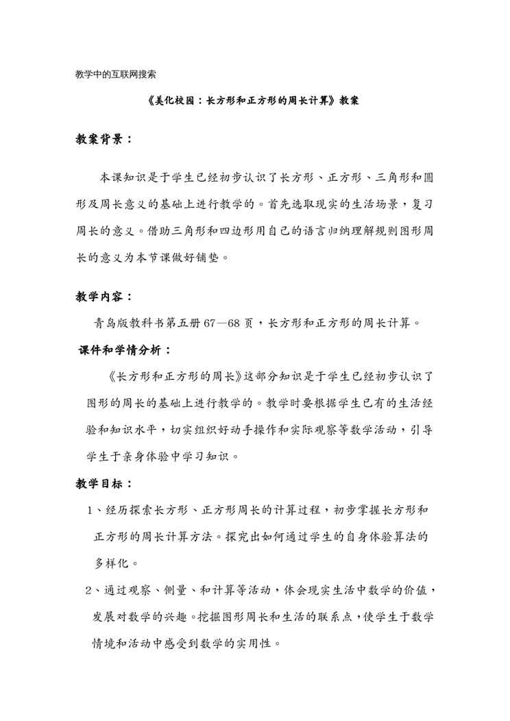 本站正式发布了《(物联网)教学中的互联网搜索教案美化校园》文档,文档详细内容可下载阅读。 声明:本站所有文章,如无特殊说明或标注,均为本站原创发布。任何个人或组织,在未征得本站同意时,禁止复制、盗用、采集、发布本站内容到任何网站、书籍等各类媒体平台。如若本站内容侵犯了原著者的合法权益,可联系我们进行处理。