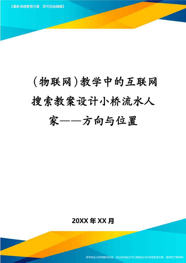 本站正式发布了《(物联网)教学中的互联网搜索教案设计小桥流水人家——方向与位置》文档,文档详细内容可下载阅读。 声明:本站所有文章,如无特殊说明或标注,均为本站原创发布。任何个人或组织,在未征得本站同意时,禁止复制、盗用、采集、发布本站内容到任何网站、书籍等各类媒体平台。如若本站内容侵犯了原著者的合法权益,可联系我们进行处理。