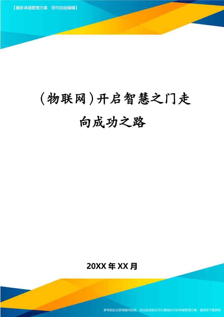本站正式发布了《(物联网)开启智慧之门走向成功之路》文档,文档详细内容可下载阅读。 声明:本站所有文章,如无特殊说明或标注,均为本站原创发布。任何个人或组织,在未征得本站同意时,禁止复制、盗用、采集、发布本站内容到任何网站、书籍等各类媒体平台。如若本站内容侵犯了原著者的合法权益,可联系我们进行处理。