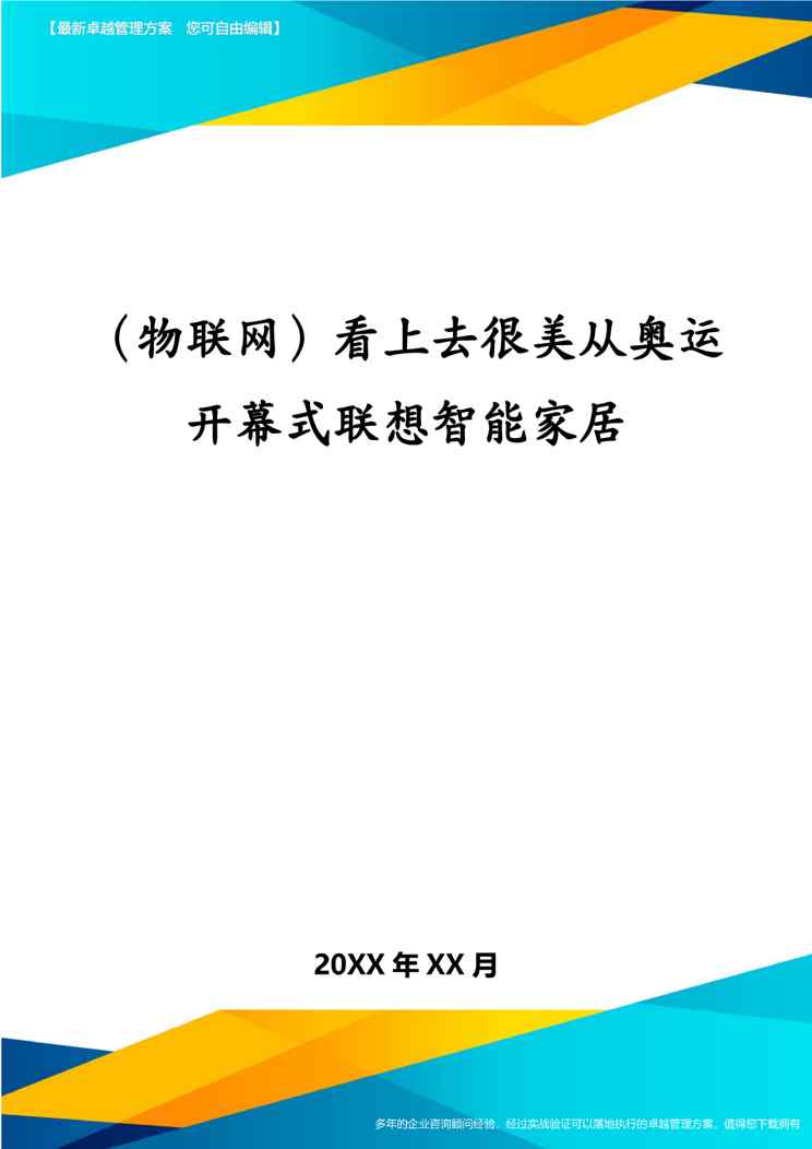 不久前,最新文档《(物联网)看上去很美从奥运开幕式联想智能家居》全文正式在本站发布,感兴趣的用户可以下载阅读。 声明:本站所有文章,如无特殊说明或标注,均为本站原创发布。任何个人或组织,在未征得本站同意时,禁止复制、盗用、采集、发布本站内容到任何网站、书籍等各类媒体平台。如若本站内容侵犯了原著者的合法权益,可联系我们进行处理。