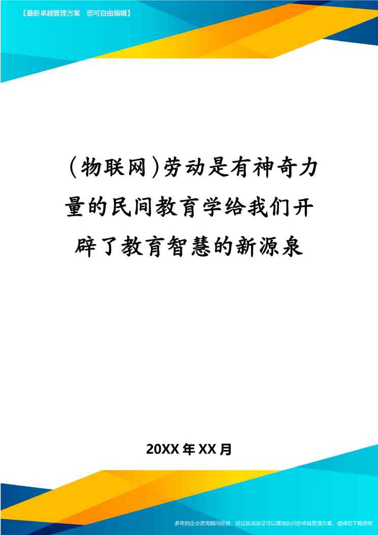 本站正式发布了《(物联网)劳动是有神奇力量的民间教育学给我们开辟了教育智慧的新源泉》文档,文档详细内容可下载阅读。 声明:本站所有文章,如无特殊说明或标注,均为本站原创发布。任何个人或组织,在未征得本站同意时,禁止复制、盗用、采集、发布本站内容到任何网站、书籍等各类媒体平台。如若本站内容侵犯了原著者的合法权益,可联系我们进行处理。