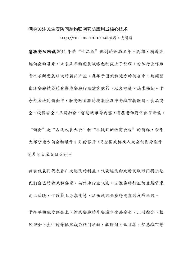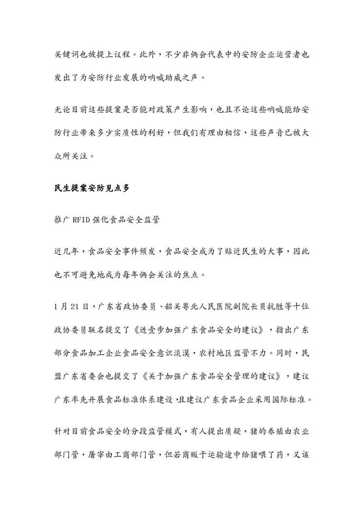 不久前,最新文档《(物联网)两会关注民生安防问题物联网安防应用成核心技术》全文正式在本站发布,感兴趣的用户可以下载阅读。 声明:本站所有文章,如无特殊说明或标注,均为本站原创发布。任何个人或组织,在未征得本站同意时,禁止复制、盗用、采集、发布本站内容到任何网站、书籍等各类媒体平台。如若本站内容侵犯了原著者的合法权益,可联系我们进行处理。
