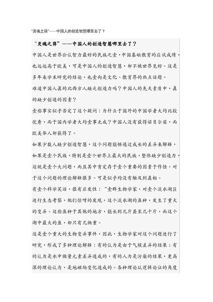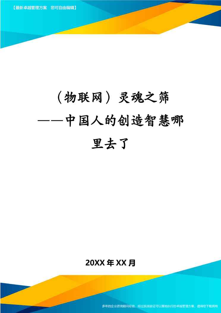 本站正式发布了《(物联网)灵魂之筛——中国人的创造智慧哪里去了》文档,文档详细内容可下载阅读。 声明:本站所有文章,如无特殊说明或标注,均为本站原创发布。任何个人或组织,在未征得本站同意时,禁止复制、盗用、采集、发布本站内容到任何网站、书籍等各类媒体平台。如若本站内容侵犯了原著者的合法权益,可联系我们进行处理。