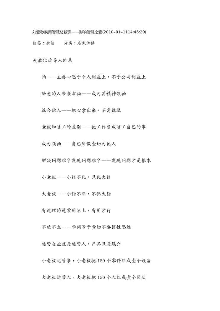 不久前,最新文档《(物联网)刘一秒实用智慧总裁班影响智慧》全文正式在本站发布,感兴趣的用户可以下载阅读。 声明:本站所有文章,如无特殊说明或标注,均为本站原创发布。任何个人或组织,在未征得本站同意时,禁止复制、盗用、采集、发布本站内容到任何网站、书籍等各类媒体平台。如若本站内容侵犯了原著者的合法权益,可联系我们进行处理。