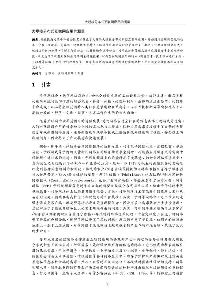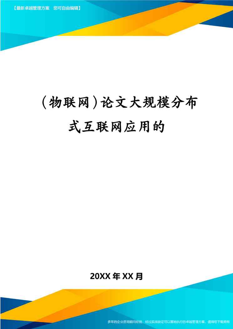 不久前,最新文档《(物联网)论文大规模分布式互联网应用的》全文正式在本站发布,感兴趣的用户可以下载阅读。 声明:本站所有文章,如无特殊说明或标注,均为本站原创发布。任何个人或组织,在未征得本站同意时,禁止复制、盗用、采集、发布本站内容到任何网站、书籍等各类媒体平台。如若本站内容侵犯了原著者的合法权益,可联系我们进行处理。