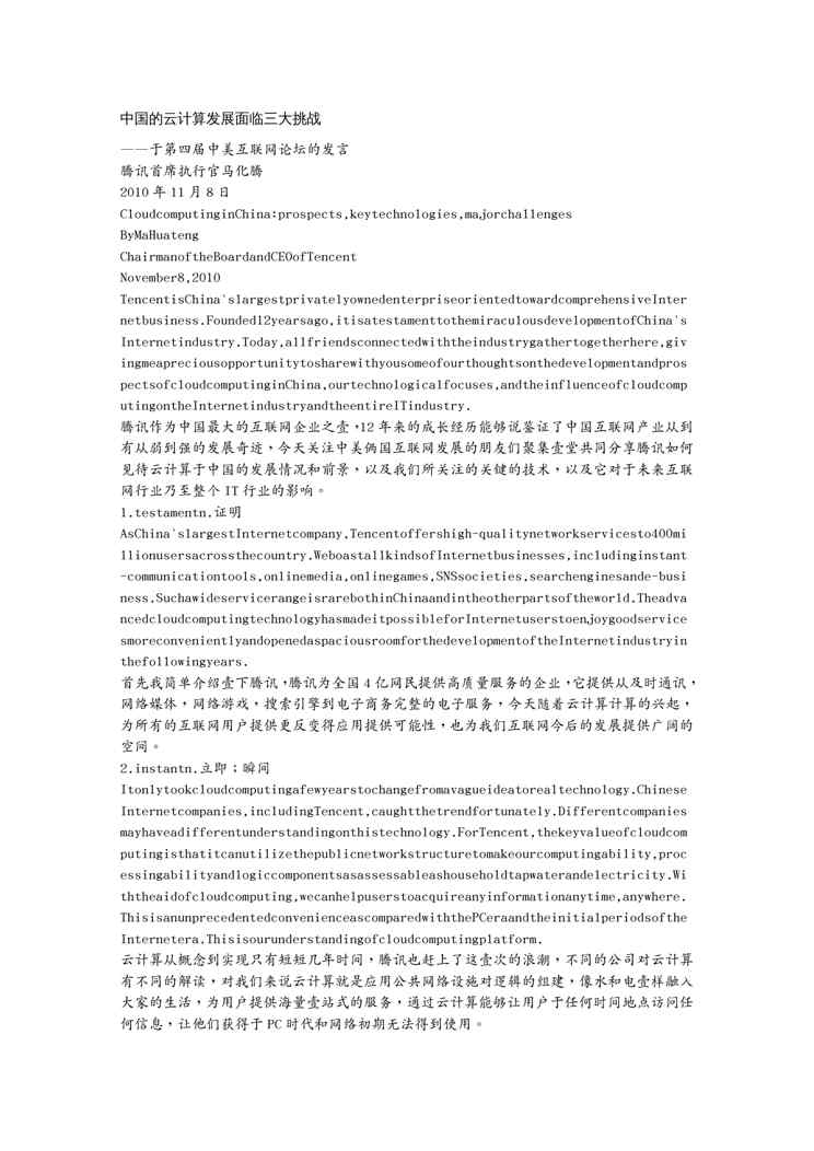 本站资深用户发布了最新的《(物联网)马化腾在第四届中美互联网论坛的发言》文档,以下内容为预览,详细内容可下载阅读。 声明:本站所有文章,如无特殊说明或标注,均为本站原创发布。任何个人或组织,在未征得本站同意时,禁止复制、盗用、采集、发布本站内容到任何网站、书籍等各类媒体平台。如若本站内容侵犯了原著者的合法权益,可联系我们进行处理。