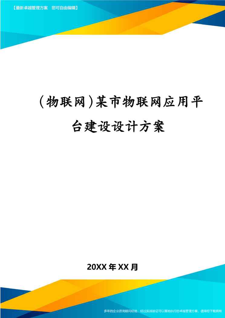 本站资深用户发布了最新的《(物联网)某市物联网应用平台建设设计方案》文档,以下内容为预览,详细内容可下载阅读。 声明:本站所有文章,如无特殊说明或标注,均为本站原创发布。任何个人或组织,在未征得本站同意时,禁止复制、盗用、采集、发布本站内容到任何网站、书籍等各类媒体平台。如若本站内容侵犯了原著者的合法权益,可联系我们进行处理。