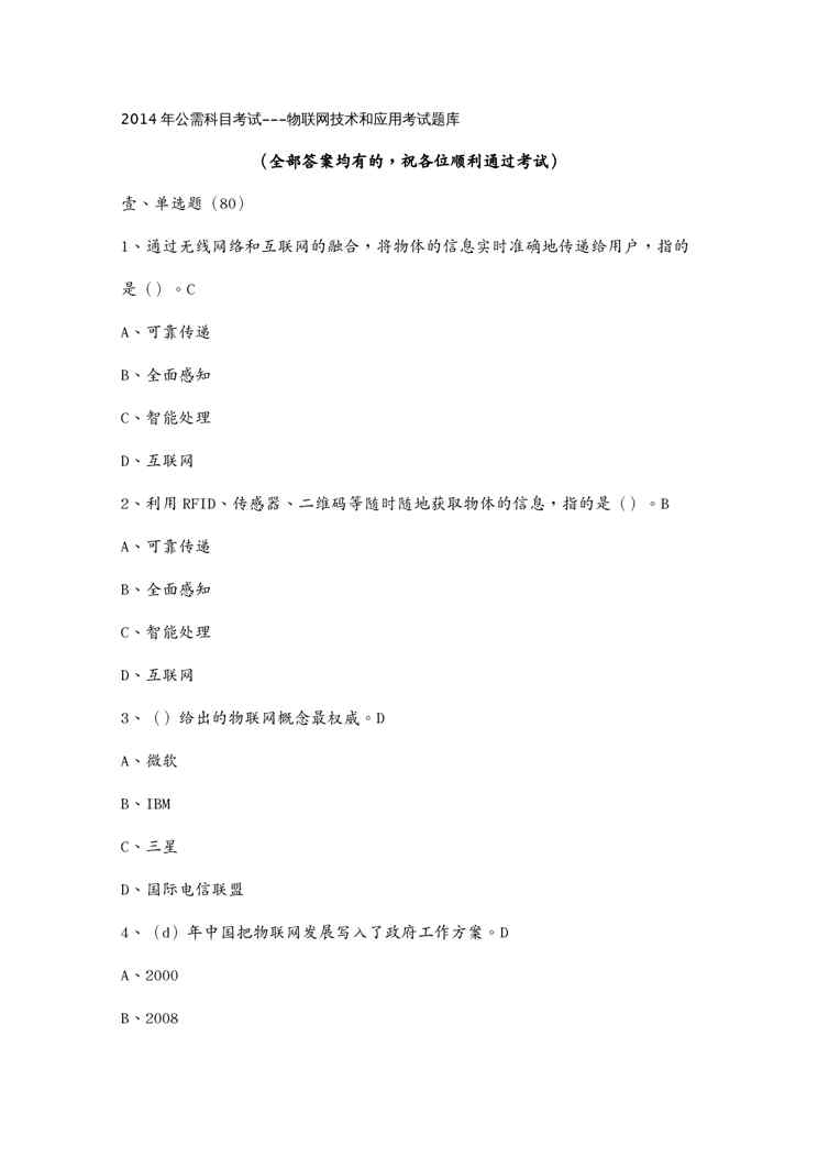 本站正式发布了《(物联网)年公需科目考试物联网技术与应用考试题库(含全部答案)》文档,文档详细内容可下载阅读。