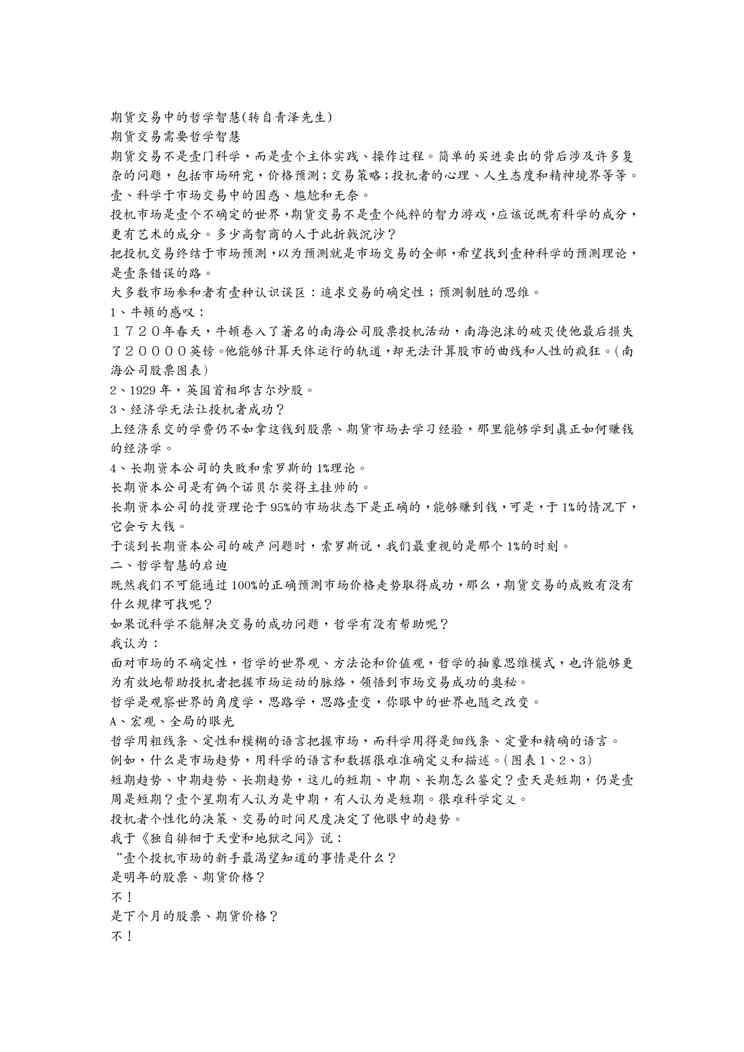 本站资深用户发布了最新的《(物联网)期货交易中的哲学智慧(转自青泽先生)》文档,以下内容为预览,详细内容可下载阅读。