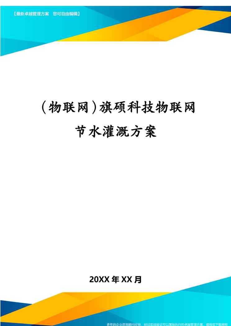 本站资深用户发布了最新的《(物联网)旗硕科技物联网节水灌溉方案》文档,以下内容为预览,详细内容可下载阅读。 声明:本站所有文章,如无特殊说明或标注,均为本站原创发布。任何个人或组织,在未征得本站同意时,禁止复制、盗用、采集、发布本站内容到任何网站、书籍等各类媒体平台。如若本站内容侵犯了原著者的合法权益,可联系我们进行处理。