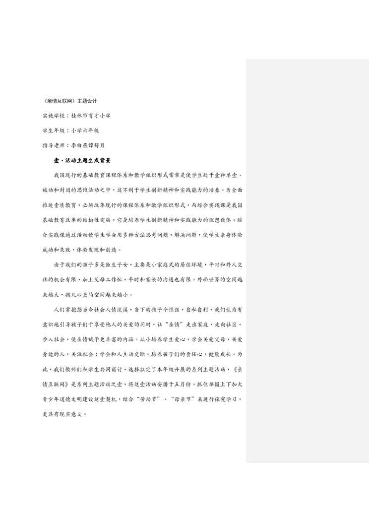 本站正式发布了《(物联网)亲情互联网》文档,文档详细内容可下载阅读。 声明:本站所有文章,如无特殊说明或标注,均为本站原创发布。任何个人或组织,在未征得本站同意时,禁止复制、盗用、采集、发布本站内容到任何网站、书籍等各类媒体平台。如若本站内容侵犯了原著者的合法权益,可联系我们进行处理。