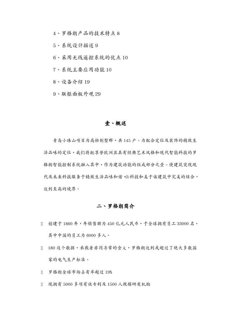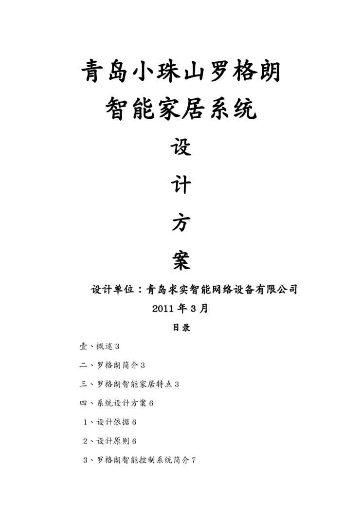 本站资深用户发布了最新的《(物联网)青岛小珠山罗格朗智能家居设计方案》文档,以下内容为预览,详细内容可下载阅读。 声明:本站所有文章,如无特殊说明或标注,均为本站原创发布。任何个人或组织,在未征得本站同意时,禁止复制、盗用、采集、发布本站内容到任何网站、书籍等各类媒体平台。如若本站内容侵犯了原著者的合法权益,可联系我们进行处理。