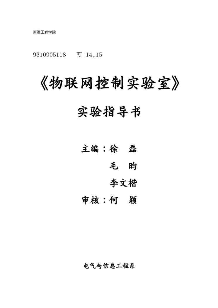 本站正式发布了《(物联网)实验指导书物联网控制》文档,文档详细内容可下载阅读。 声明:本站所有文章,如无特殊说明或标注,均为本站原创发布。任何个人或组织,在未征得本站同意时,禁止复制、盗用、采集、发布本站内容到任何网站、书籍等各类媒体平台。如若本站内容侵犯了原著者的合法权益,可联系我们进行处理。