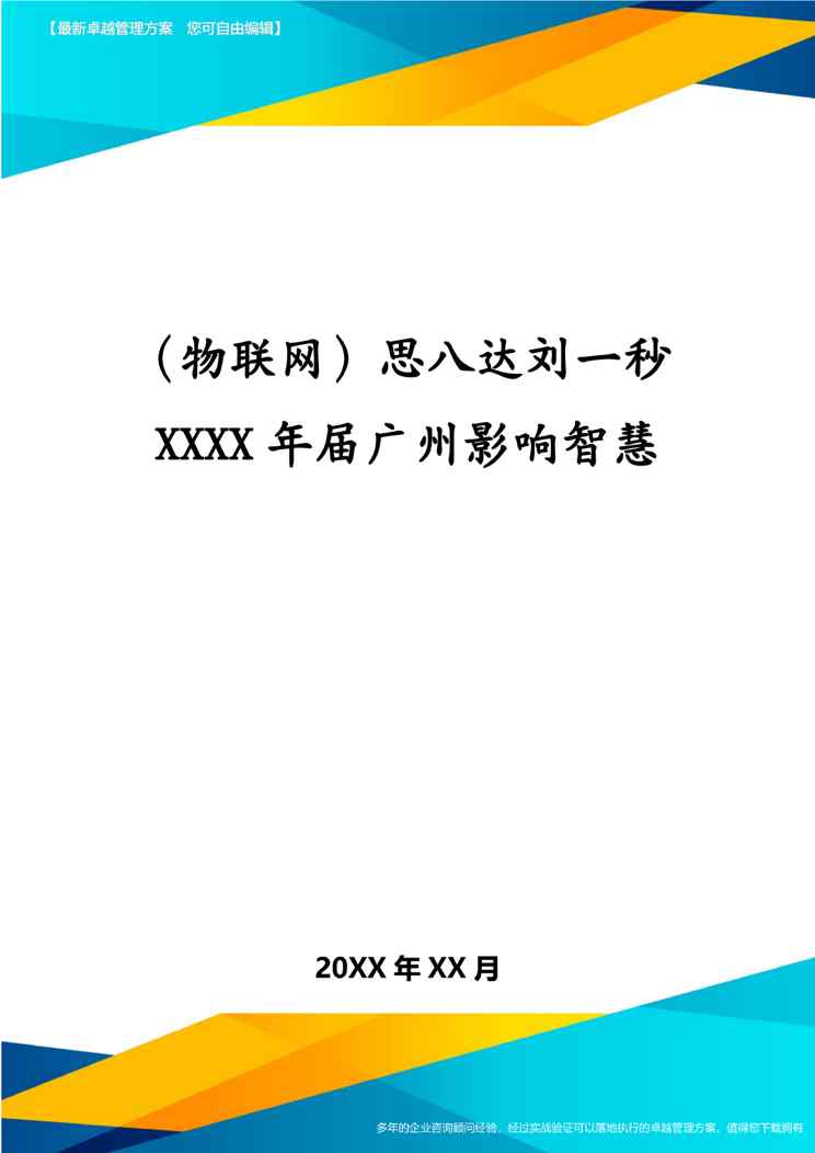 不久前,最新文档《(物联网)思八达刘一秒XXXX年届广州影响智慧》全文正式在本站发布,感兴趣的用户可以下载阅读。 声明:本站所有文章,如无特殊说明或标注,均为本站原创发布。任何个人或组织,在未征得本站同意时,禁止复制、盗用、采集、发布本站内容到任何网站、书籍等各类媒体平台。如若本站内容侵犯了原著者的合法权益,可联系我们进行处理。
